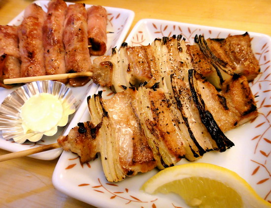 烤雞肝、烤雞心:邊烤邊塗濃厚的烤醬,甜甜鹹鹹還帶點焦香很入味。